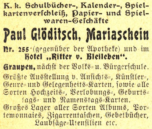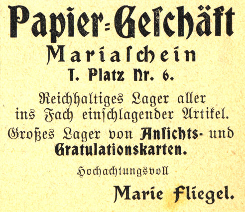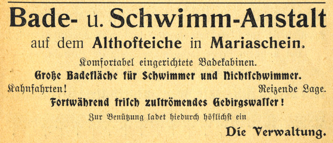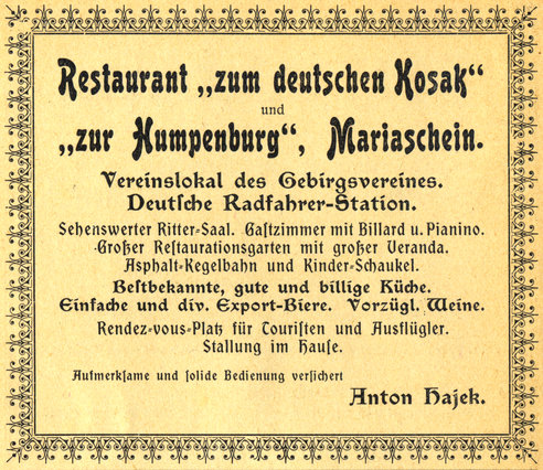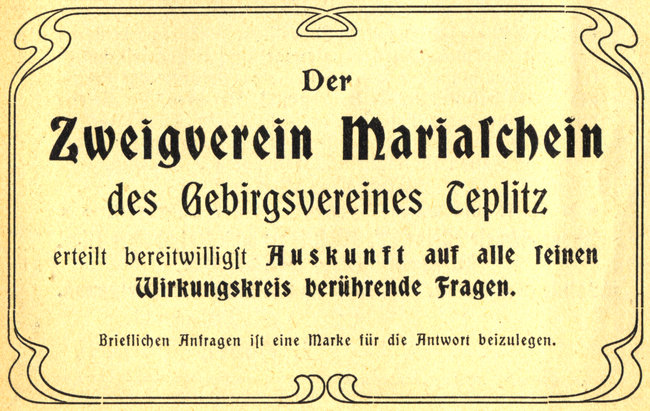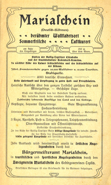 Werbebroschüre aus Mariaschein von 1912