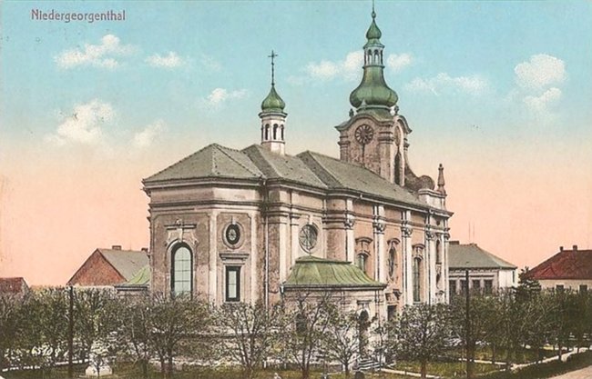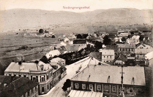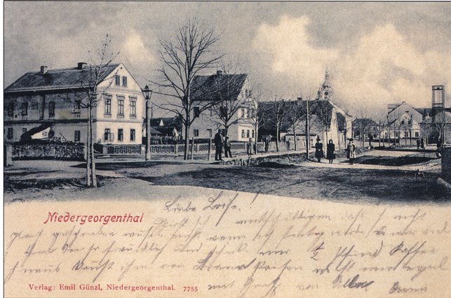 Niedergeorgenthal um 1935 - Kirche, Schule, Markt