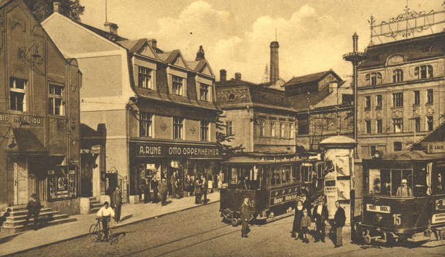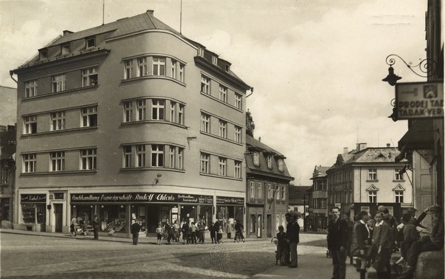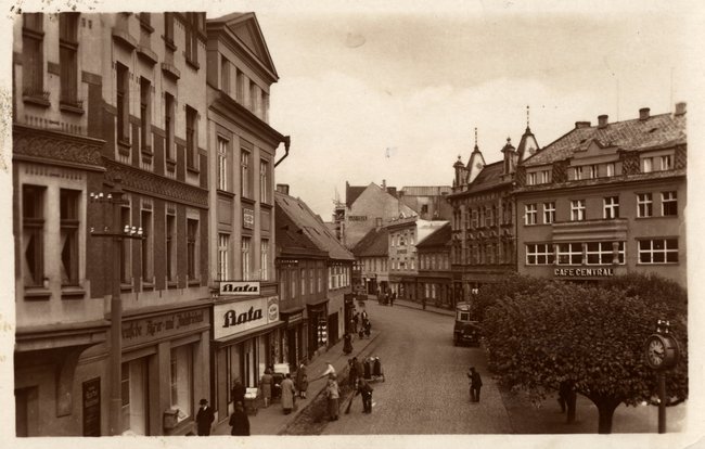 Freiheits-Platz mit Bat'a-Schuhe, Café Central, Deutsche Agrar- und Industriebank ca. 1937