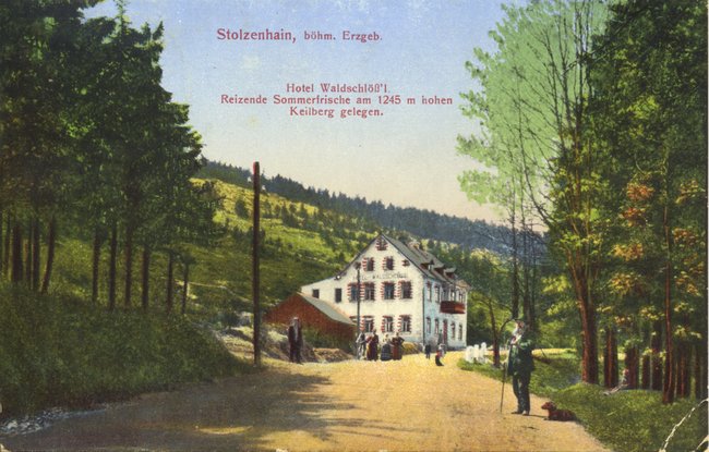Der Ort Stolzenhain, früher auch Stolzenhan, enstand im 16. Jahrhundert als Bergbausiedlung. Der Ort gehörte zum Joachimsthaler Bezirk. Heute gehört es als Ortsteil von Weipert zum Kreis Komotau. Die bis zum Ende des Zweiten Weltkrieges zu Stolzenhain gehörigen Ortsteile Gahlerberg, Hofberg und Königsmühle sind heute aufgelassen. Heute stehen hier größtenteils Wochenend- bzw. Ferienhäuser.