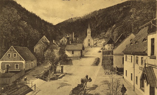 rechts Bahnhof der Dux-Bodenbacher-Eisenbahn