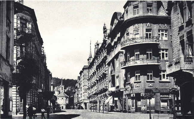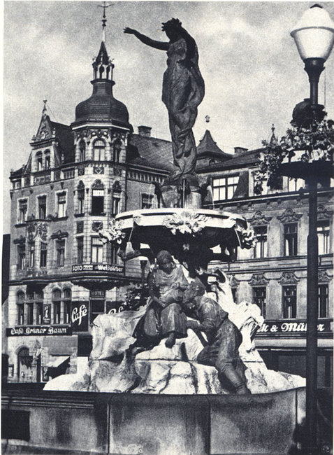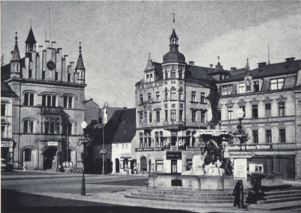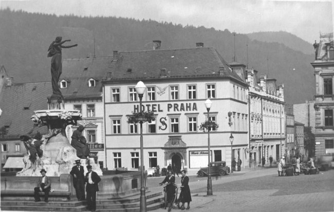 Tetschen - Marktbrunnen vor Hotel "Praha" um 1938