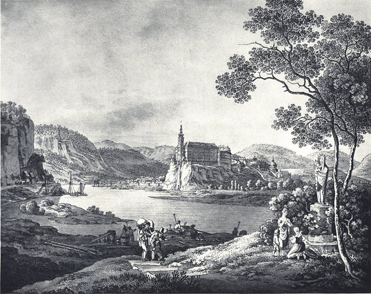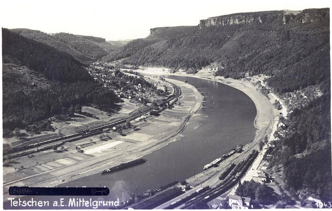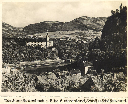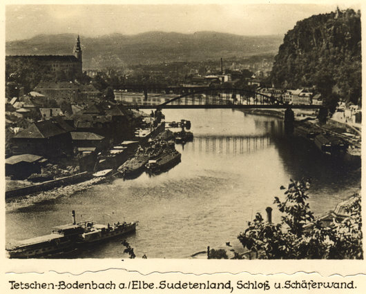 Elbe mit Schloß Tetschen und Schäferwand Bodenbach